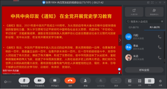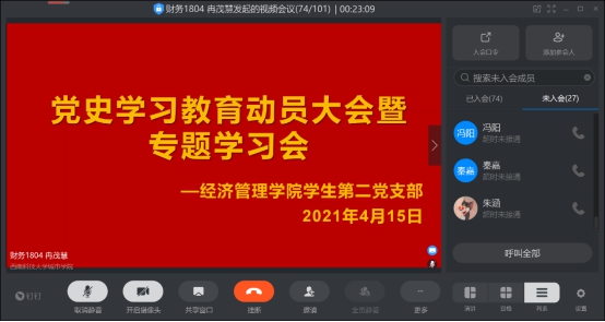 为积极落实中共中央印发《关于在全党开展党史学习教育的通知》,切实做好公司党史教育学习工作。2021年4月15日经管公司员工第二支部在线上召开了党史专题学习会。会议由党总支组织委员刘佳同志组织,支部全体党员参加。