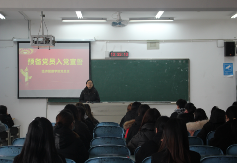 12月15日经济管理学党总支举行了新党员入党宣誓仪式。新发展党员及所在支部党员代表参加了本次活动,宣誓仪式由党总支组织委员主持。