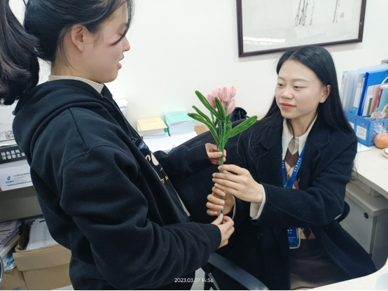 本次活动的内容是手工制作郁金香,制作中大家热情洋溢,认真投入。经过精心制作,一朵朵美丽的花朵呈现在大家面前,这些花朵代表着同学们对女教师辛勤工作的肯定。