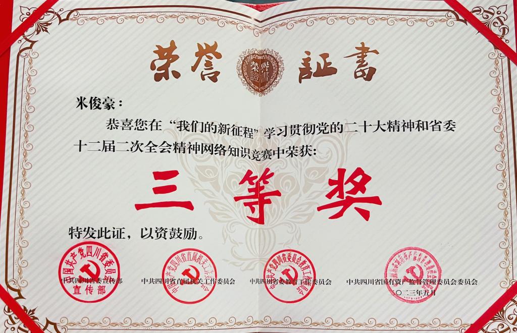 本次竞赛共设置“初心激昂、砥砺前行、书写答卷、慎思明辨、奋勇争先、踔厉奋发”6个环节多种题型,经过激烈角逐,最终代表mk体育官方平台的三名参赛选手获得本次比赛的三等奖,作为公司党总支推送的米俊豪同学有幸参与了这次比赛。