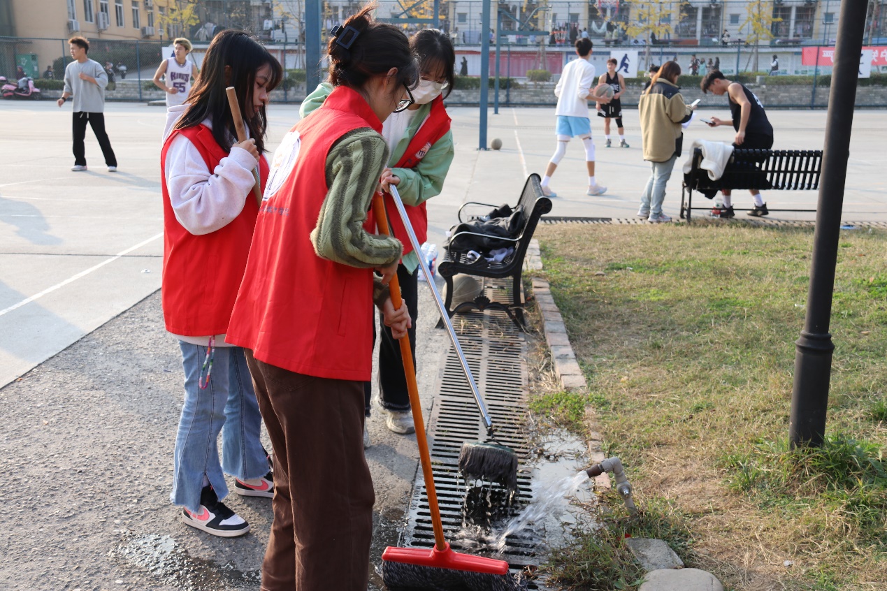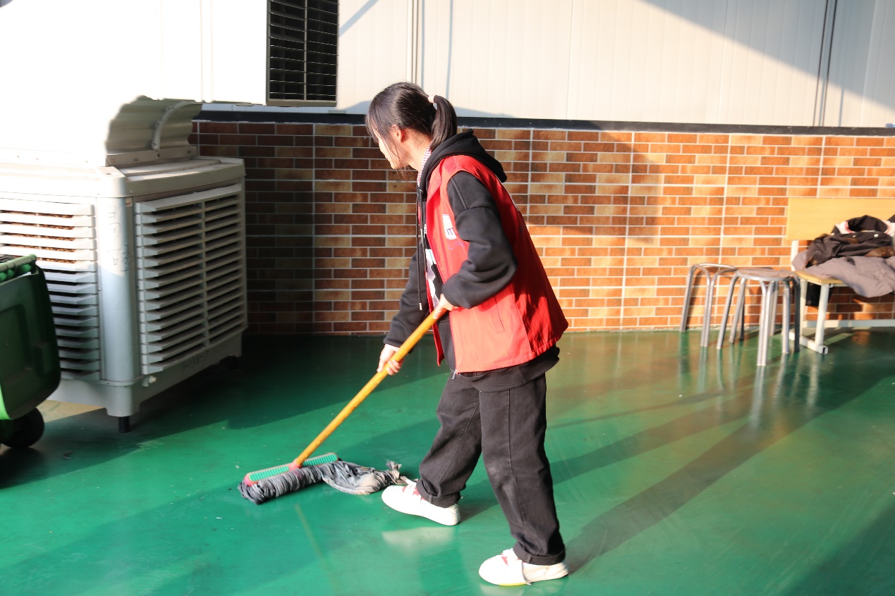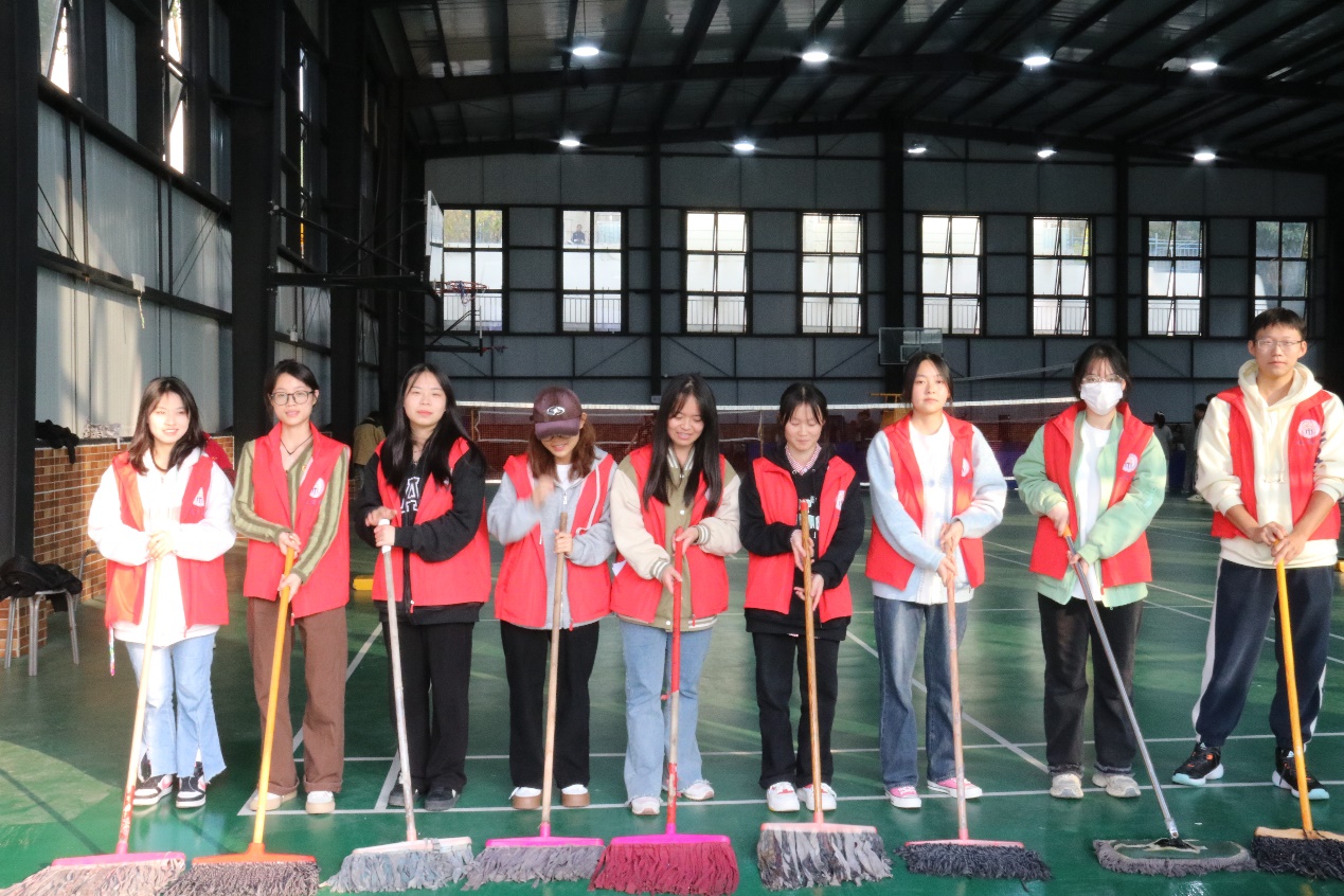 活动中,志愿者身穿爱心马甲,热情高涨。有的用扫把清扫球场地面上的生活垃圾和杂物,有的用拖布清理地面的灰尘。他们不怕脏、不怕累,用自己的行动体现着一名党员的初心,激励着广大学子不断加入服务队伍。那一张张灿烂的笑脸,成为了球场上一道靓丽的风景线。