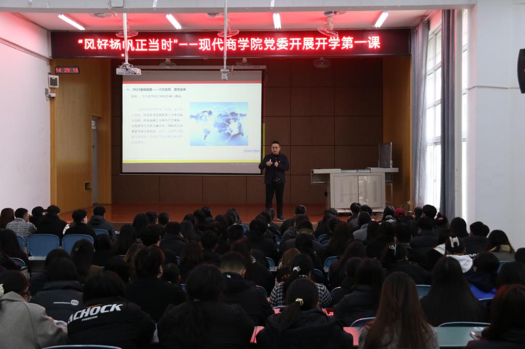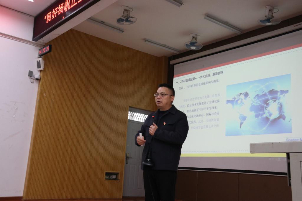 王书记从当今世界主要国家的政治态势与关系,经济格局及趋势,地缘政治与冲突局势,全球化影响与挑战这四个方面分析总结了全球局势呈现出的多样性和复杂性。他指出,当今世界局势存在六大变局,激荡全球。第一变局是多极化格局之变:硬实力此消彼长,“慢变量”蓄势待发。第二变局是全球化动能之变:美国摇身成最大阻力,中国挺身成最大动力。第三变局是国际治理体系之变:伪多边主义招摇撞骗,真多边主义负重前行。第四变局是地缘政治版图之变:四洋翻腾,五洲震荡。第五变局是各国治理模式之变:中国之治再开新局,西方之乱再添新伤。第六变局是国际社会思潮之变:极右思潮兴风作浪,民粹主义大行其道。他说:“当我们静下心来逐一梳理百年变局下的2023年时会发现,世界之变、时代之变、历史之变正以前所未有的方式展开。青年一代要把稳青春之舵,在青春的赛道上奋力跑出最好的成绩。”