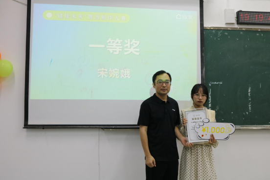 随后,由吴强老师、周坤老师、胡城瑜老师、王兰老师为之前简历制作评比中的优秀奖、三等奖、二等奖、一等奖的获得者颁奖。