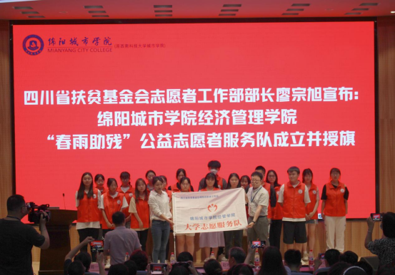 四川省扶贫基金会志愿者工作部廖宗旭部长宣布mk体育官方平台经济管理公司“春雨助残”公益志愿者服务队成立并授旗。经济管理公司“春雨助残”公益志愿者服务队队长陈熙之老师上台接旗并发言。 他说:“生逢新时代,青年当有样。我将与所有志愿者一起响应号召,脚踏实地尽己所能,服务社会服务人民,奉献自己的青春和力量。”