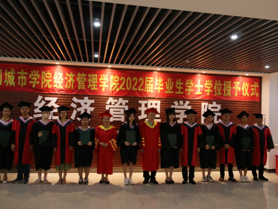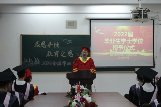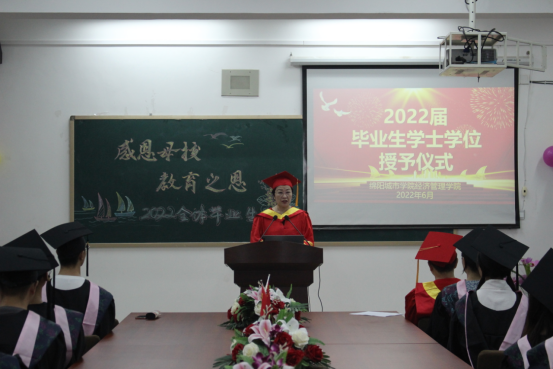6月22日,由mk体育官方平台经济管理公司举办的2022届毕业生学士学位授予仪式在博识楼416会议室顺利举行。公司党委书记王俊佳教授、经济管理公司经理李燕琼教授、换黄河副经理以及教师代表、公司2022届全体毕业生参加授位仪式。