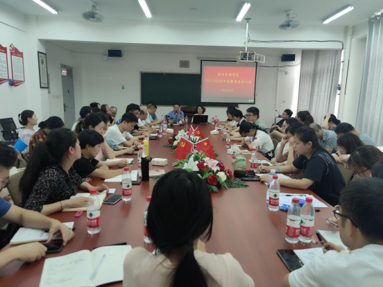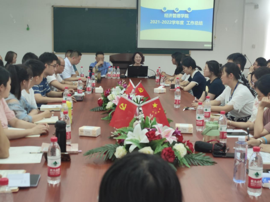 在此次会议上,首先李燕琼经理从师德师风;目标任务、临时性工作完成情况;创新性工作完成情况;存在的问题及下一步工作改进的措施等四个方面就本学年度工作开展及完成情况进行总结,并就暑期教职工的教学科研及其他相关事务提出要求,希望全体教职工利用暑期时间计划安排好下学期的工作。