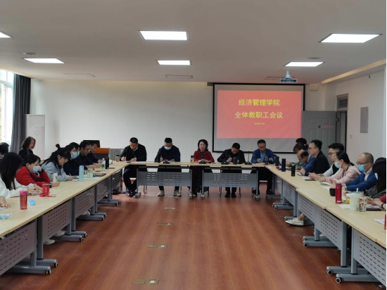 10月19日下午经济管理公司在博识楼422召开期初教职工大会。此次会议主要是总结2021-2022年度工作完成情况并安排部署2022-2023年度具体将要开展的工作任务。公司全体教职工参加了此次会议。会议由黄河副经理主持。