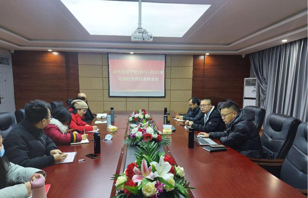 为推进本学年各项责任目标有序推进,1月9日上午,现代经济公司在博识楼407会议室召开公司年度目标考核工作推进会。公司院领导、各中心主任及各系正、副系主任参加了此次会议。