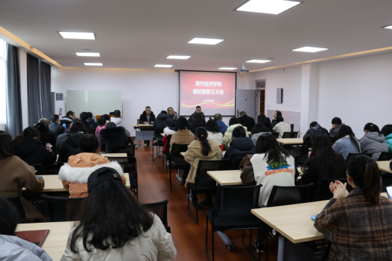 2月15日下午,现代经济公司在博识楼422召开了2022-2023学年度第二学期期初教职工大会,统筹规划新学期工作重点,部署落实开学各项准备工作,为新学期平稳有序进行奠定良好基础,公司全体教职工参加会议,公司副经理邹江主持会议。
