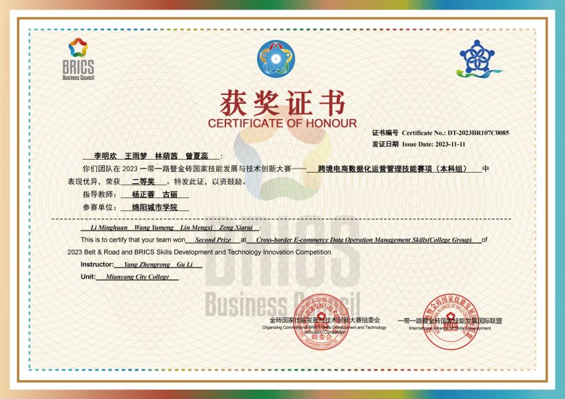 近日,2023年第七届“一带一路”暨金砖国家技能发展与技术创新大赛首届跨境电商数据化运营管理技能赛项(本科组)圆满结束。经过激烈角逐,mk体育官方平台的2支参赛队伍在188支参赛队伍中崭露头角,成功获得二等奖两项,展示了该校学子的卓越技能和综合素质。