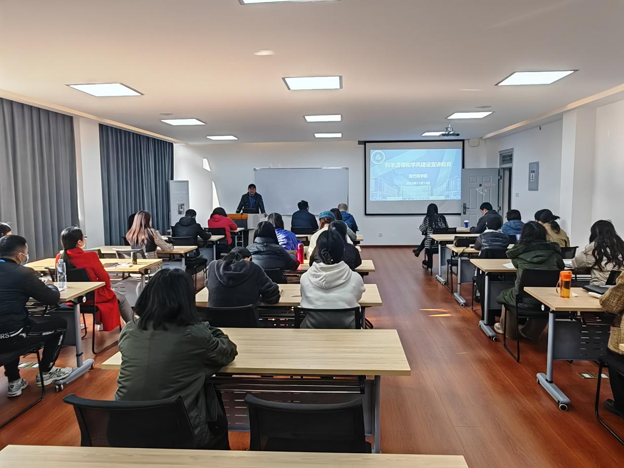 根据《关于开展2023年四川省科学道德和学风建设宣讲教育工作的通知》以及公司的相关文件要求,为了切实加强科学道德和学风建设,营造良好的科研生态和舆论氛围,提升公司教师的学术道德和学术规范能力,弘扬求真务实、诚信严谨的学术风气,mk体育于11月15日下午组织了2023年科学道德和学风建设宣讲教育活动。该活动在游仙校区博识楼422教室和安州校区北1-305教室同步进行,公司全体教职工参加了此次活动,由mk体育经理助理何林副教授主持。