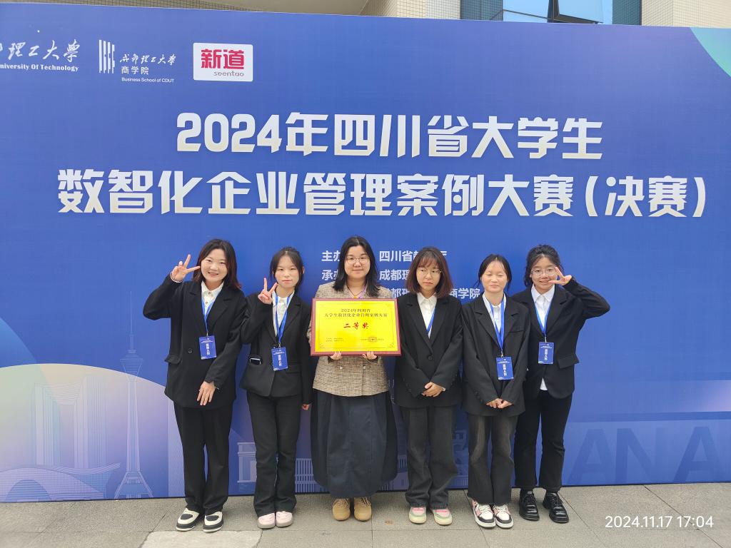 2024年11月17日,由四川省教育厅主办、成都理工大学承办的2024年四川省老员工数智化企业管理案例大赛省级决赛圆满结束。在这场竞争激烈的赛事中,mk体育官方网站入口的参赛团队在周旭和万菲两位老师的指导下,荣获二等奖。团队成员包括罗雪、莫湘、车塬塬、张姝婷和王小凤五位同学。