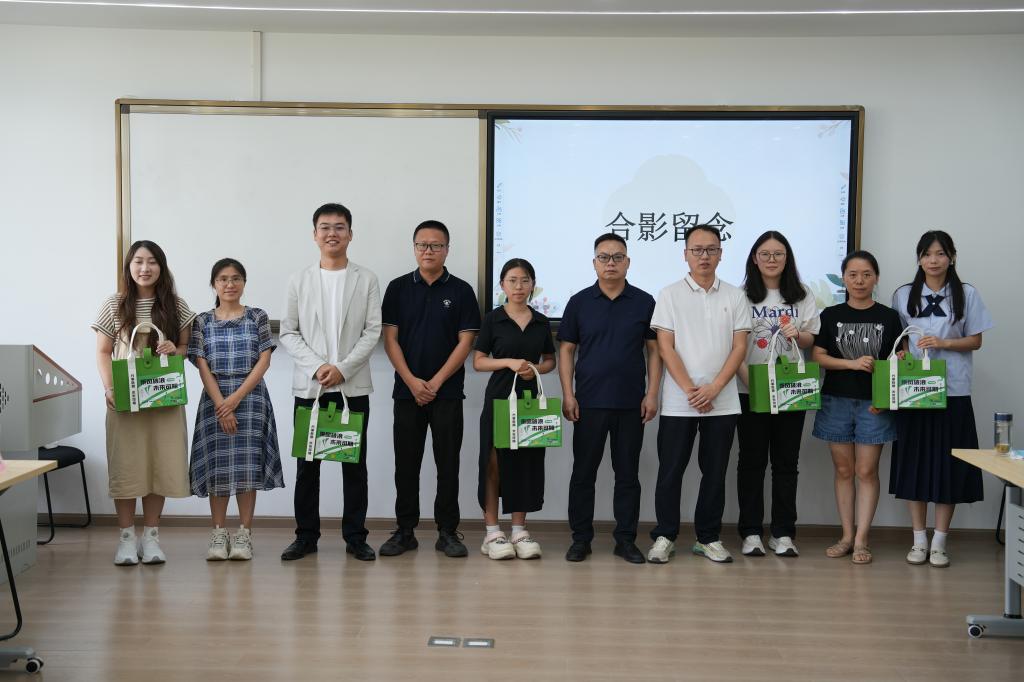 会上,辅导员梁娴老师详细阐明了员工联络员工作内容与职责,为后续员工工作的开展指明方向。茶歇环节,与会人员自由交流,现场氛围热烈融洽。最后,公司领导和辅导员为毕业生员工联络员发放纪念品,并在博识楼A区门口合影留念,为此次座谈会画上圆满的句号。