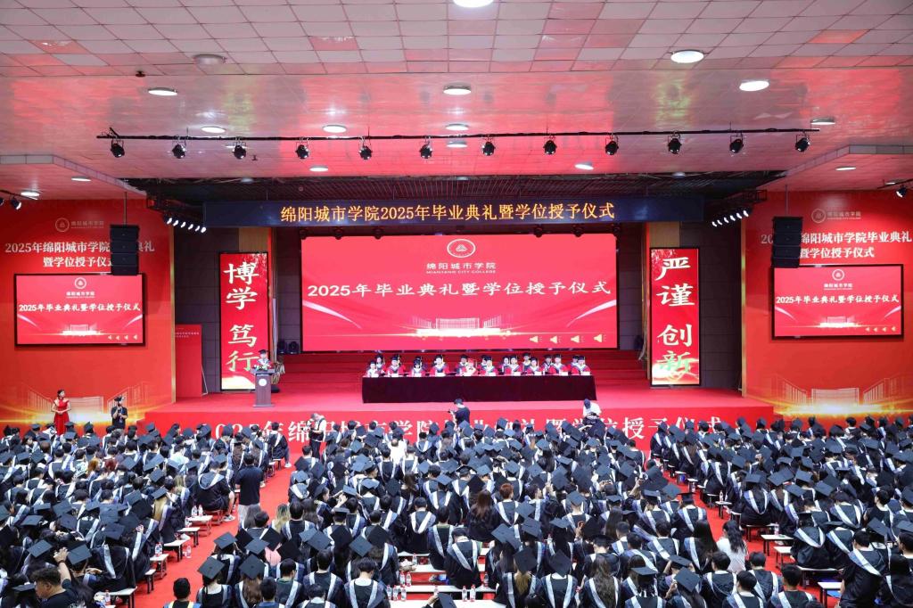 绵阳城市公司党委副书记刘续梅副教授宣读表彰优秀毕业生的决定,校领导依次为校、省级优秀毕业生颁发证书,激励全体毕业生以优秀为榜样,在未来道路上奋勇前行。