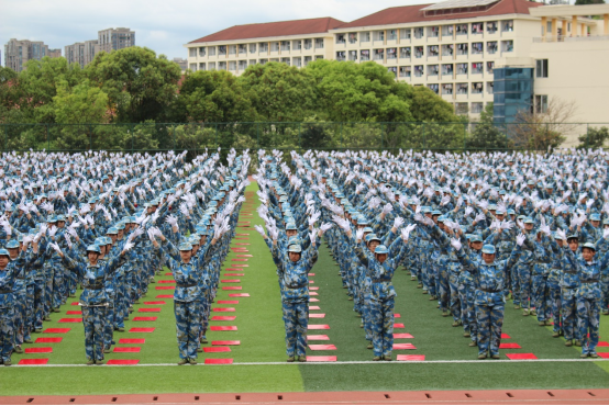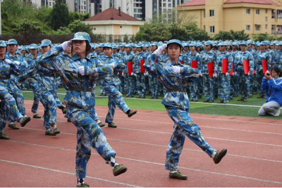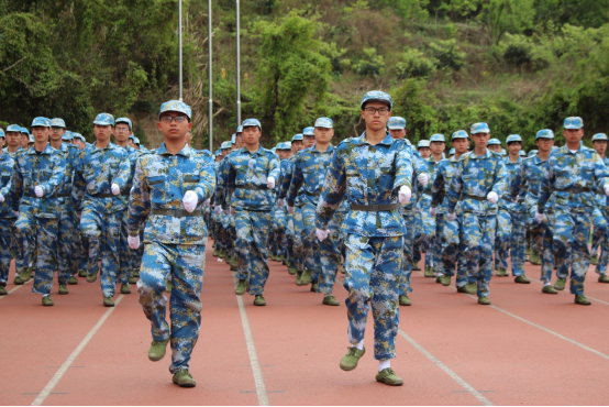2021级新生的三十个分列式动作整齐划一,昂扬的斗志、雄壮的步伐、响亮的口号,展现着他们这十天的训练成果。“齐步——走”,21级新生齐步、踏步、正步、敬礼一气呵成。每个同学以饱满的精神状态投入到表演中,成为检阅场上一道靓丽的风景线。