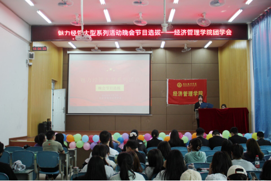 由经济管理公司学工中心主办、经济管理公司团学会承办的第四届“魅力经管”大型晚会活动节目选拔在博识楼B115举行。本次晚会选拔的主持人是青年传媒部曾文静同学,评委由团学书记处主席团担任。