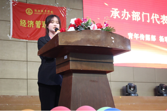 活动第一项,承办部门代表发言。青年传媒部部长杨瑞雪表示魅力经管大型系列活动是mk体育官方平台经济管理公司最具影响力的活动之一,对展现公司学子健康向上的精神风貌和新时代老员工魅力具有重要意义。各个班级在青春早操活动中展现出了不一样的阳光活力,在寝室文明与班风学风建设中表现出班级团结向上的氛围,在公众号大赛中展示出各班级公司生活的精彩,在加分作品中大家各显神通,可谓人才济济。