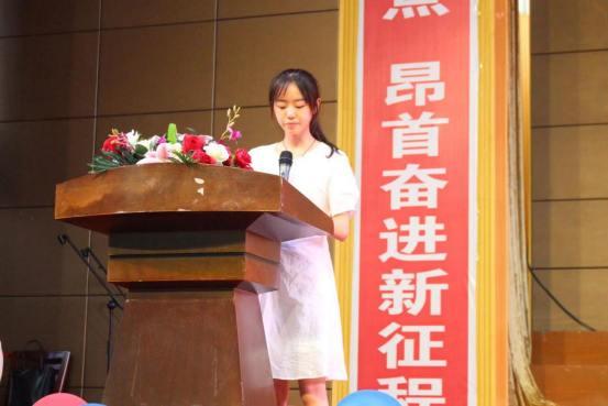 活动第四项,优秀班级员工代表发言。员工代表廖苡廷表示参加此次活动给予了她莫大的鼓舞,班委们各尽其职,组织同学们完成排练和表演,她坚信,自己班级就是最棒的。“天道酬勤,力耕不欺”,只要努力地去做一件事情,就一定会有收获。