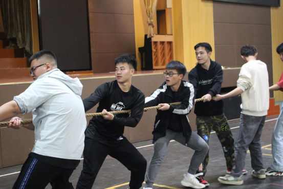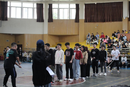 接着,闯关游戏结束后大家来到体育馆开始团队游戏,游戏总共分为了四个项目。第一项为“占领阵地”,比拼的是在同一张纸上站的人数,各个部门群策群力,想法不断,采取了别样且有趣的姿势。第二项为“踩气球”,每个部门派出两名参赛人员,脚踝处绑两个气球,气球全部被踩爆则视为淘汰,各个部门的参赛人员一起上场,同时开赛,音乐响起,大家立马动了起来,比赛十分激烈,随着场上一阵又一阵的气球爆破声,最终角逐出了该项比赛的前三名。第三项为“跳大绳”,每个部门派出两人甩绳,八人跳绳,跳到三十个用时最少的部门获得该项目的胜利,各部门参赛人员齐心协力,跟随着指令跳动起来。最后一项“拔河”,每个部门派出十名参赛选手,两两一组进行对决,大家整齐划一地喊着口号,卯足了劲向后拉起来。比赛现场加油呐喊声不断,大家的热情也是不断高涨。