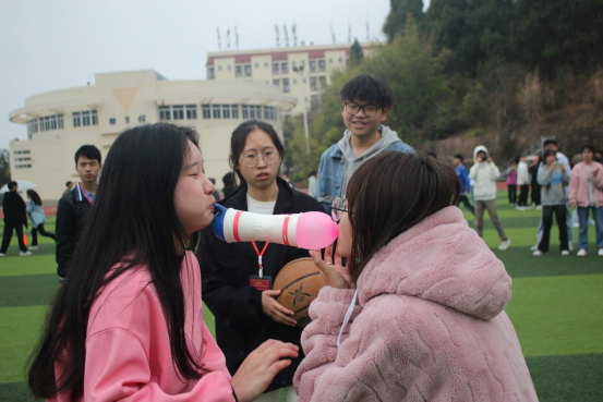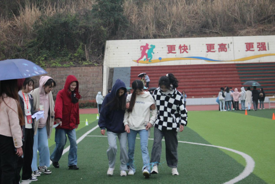 首先进行的是闯关游戏,每个部门的部长和干事进行了激烈的讨论,选择出了参赛选手。各部门的参赛选手从操场的一侧出发,总共需经历“气球传纸杯”、“正话反说”、“信任之旅”、“手脚同心”、“指压板跳绳”这五个关卡方能到达终点,结束比赛计时。足球场上欢呼声此起彼伏,大家都在为自己的小伙伴加油呐喊,参赛选手也是不负众望,相继到达终点,为本部门赢下了相应的积分,也为最终的胜利打下了基础。