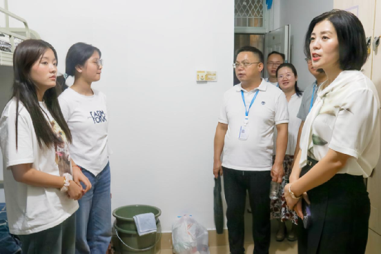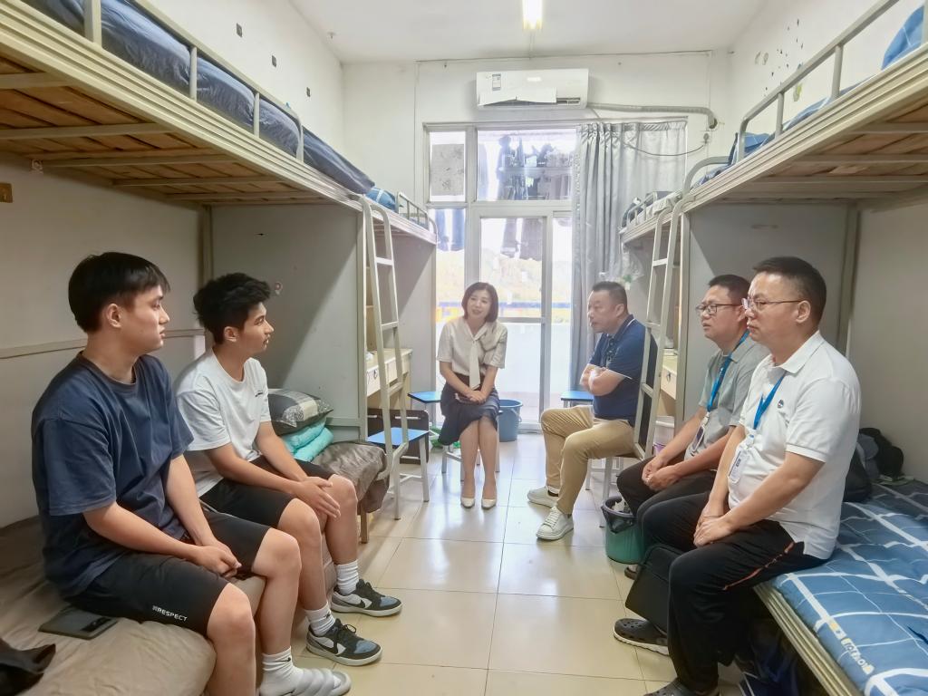 领导们一行首先来到博宁公寓男生宿舍,一进门就受到了新生们的热烈欢迎。宿舍内,校院领导与来自五湖四海的新生们围坐在一起,相互交流,气氛温馨而热烈,领导们亲切询问了新生的家庭情况、入学报到是否顺利、对宿舍环境是否满意等,细致入微的关怀让新生们感受到了家的温暖。