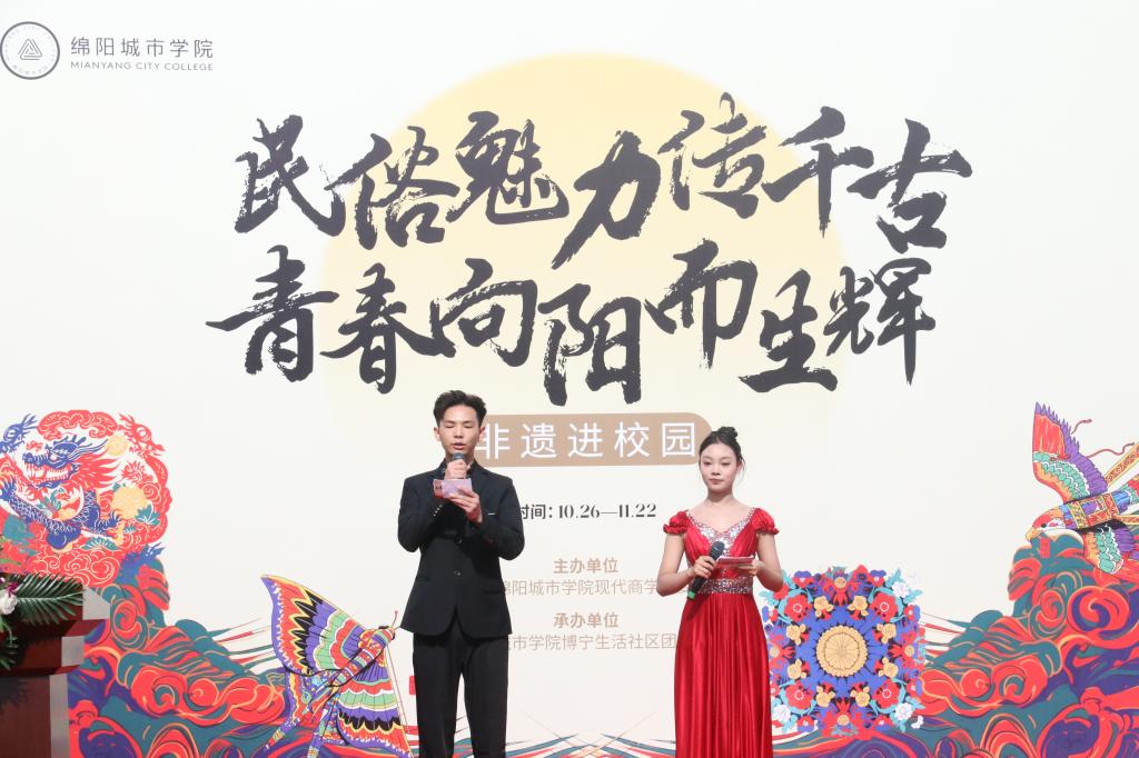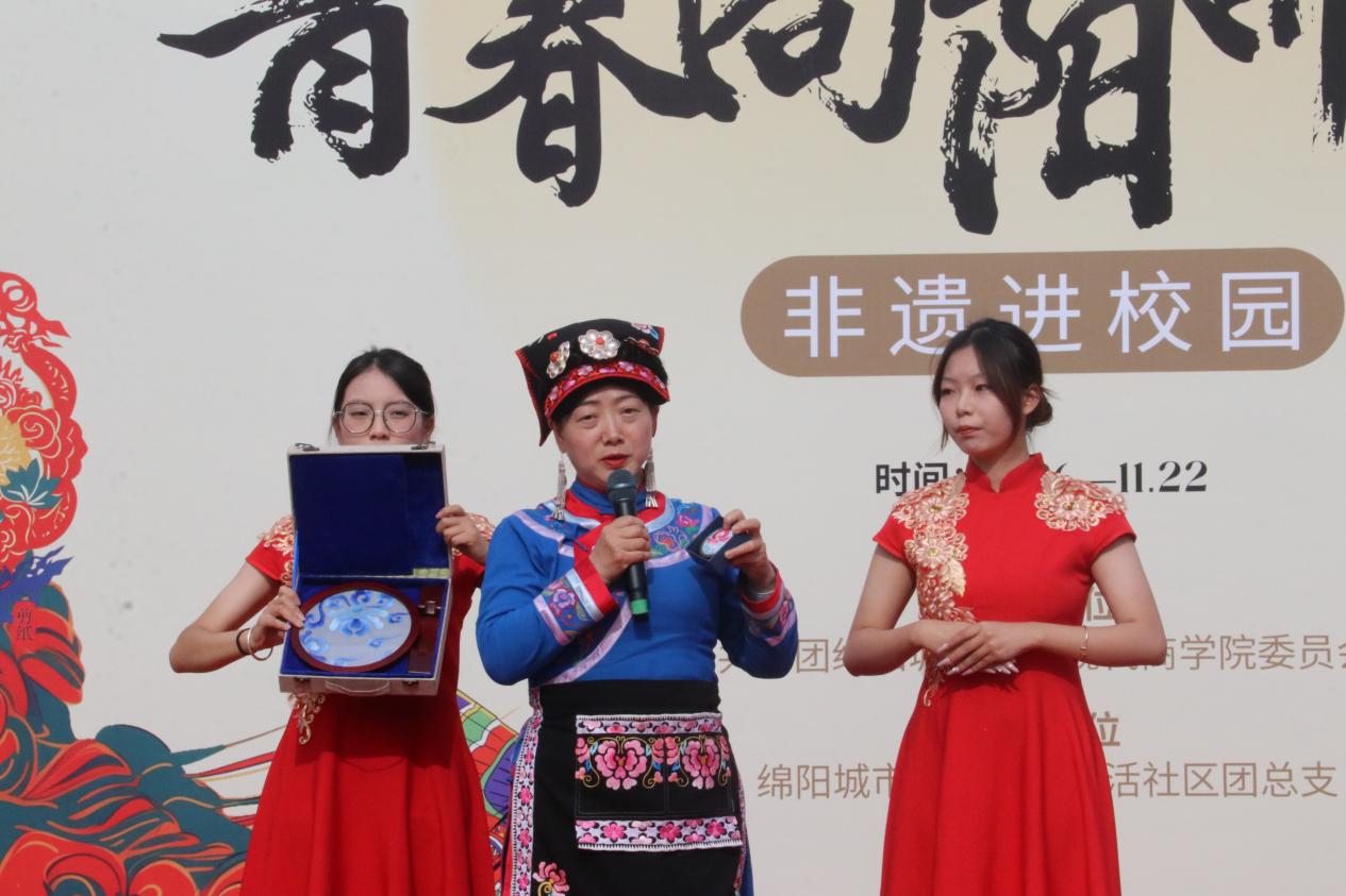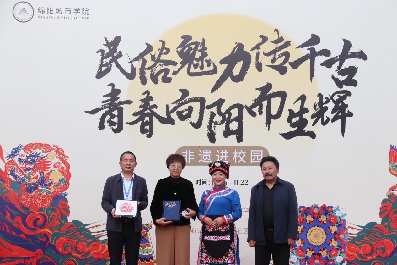 11月4日下午,由mk体育官方网站入口团委与博宁生活社区联合主办的“民俗魅力传千古,青春向阳而生辉”非遗进校园活动开幕式,在游仙校区科技楼广场盛大举行。本次活动荣幸邀请到绵阳市非物质文化遗产保护中心副主任陈碧华、创编部副主任彭春艳,以及四川省非遗羌绣传承人陈云珍老师和平武剪纸传承人谢成飞老师。同时,mk体育官方平台执行董事长林秀英、常务副董事长左申兵、学工服务中心主任吴向宾,以及各分院、部门领导、教师及员工代表出席了开幕式。活动旨在通过非遗展示与教学指导,展现中国传统民俗文化的独特魅力,增强民俗文化的感染力,并激发广大师生的认同感与参与热情。