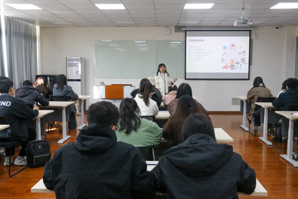 在新闻写作培训环节,梁海霞老师首先解析了新闻报道的基本体裁,如消息、通讯、评论等,并详细讲解了新闻报道的结构与原则。她强调新闻的真实性、客观性和公正性,并通过“全国百篇优秀管理案例”评选新闻稿实例,生动形象地展示了新闻六要素的运用技巧。此外,梁老师还针对不同类型的新闻,如会议、活动、讲座等,进行了写作要点分析,指导团学干部如何在各类校园活动中准确把握新闻价值,提升新闻敏感度。