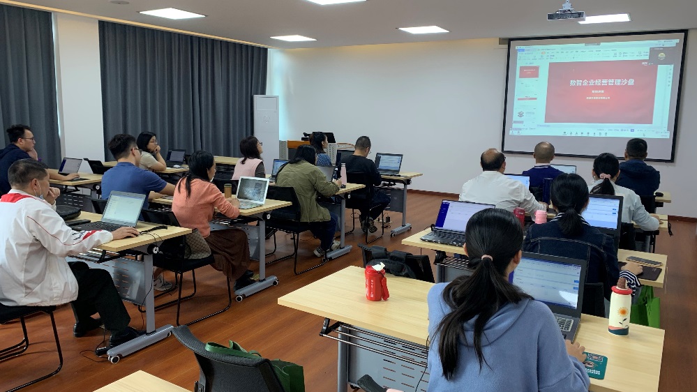 为推动数字经济时代的数智化改革,紧跟时代脉搏加速人才供给侧结构改革,促进数字化人才培养,提升员工创新能力。近日,经济管理公司实验实训中心承办了由经管公司工商管理系及新道科技股份有限公司合作举办的数智企业经营管理沙盘团队培训会,培训会在博识楼422-ERP沙盘模拟实验室举行。