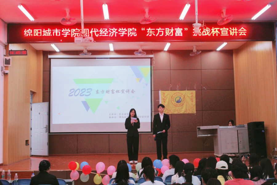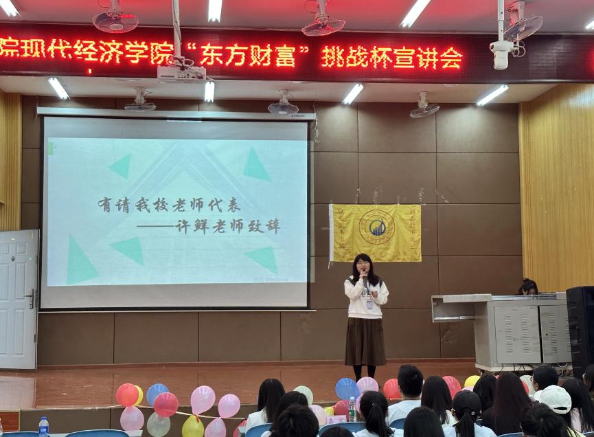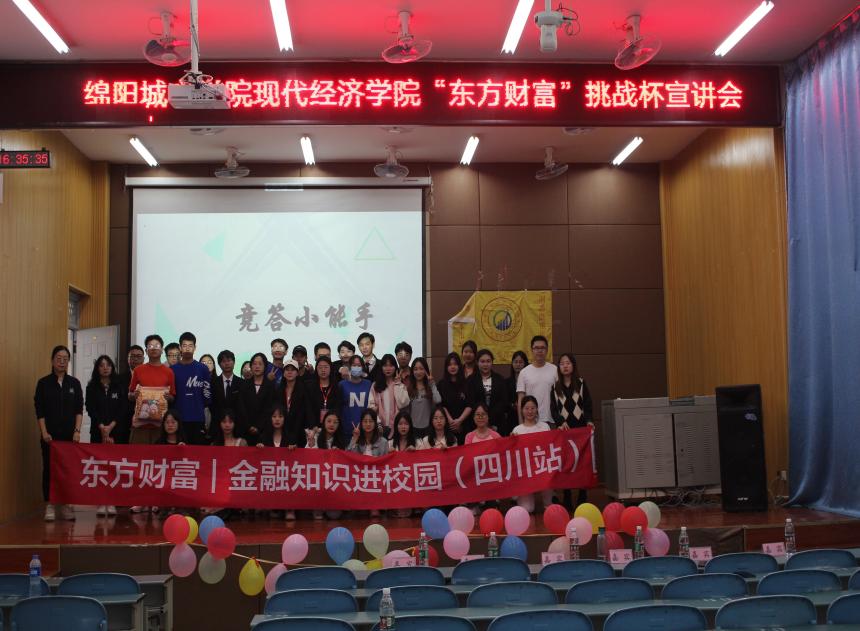 最后,“东方财富杯”金融挑战赛四川地区负责人卢嘉鹏先生介绍了本届“东方财富杯”金融挑战赛的相关规则,并和同学们一起分享交流了证券公司职位与晋升以及对当下时事热点的想法。