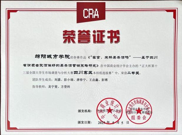 本专业积极鼓励员工参与各类竞赛,在教师的悉心指导和同学们的共同努力下,在全国高校商业精英挑战赛、全国老员工市场调查与分析大赛、全国老员工人力资源管理综合能力竞赛、四川省老员工供应链优化管理大赛、四川省老员工营销策划大赛等比赛中获得多项国家级、省级奖项。
